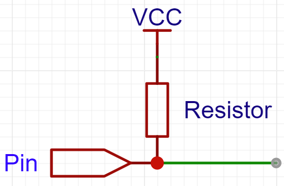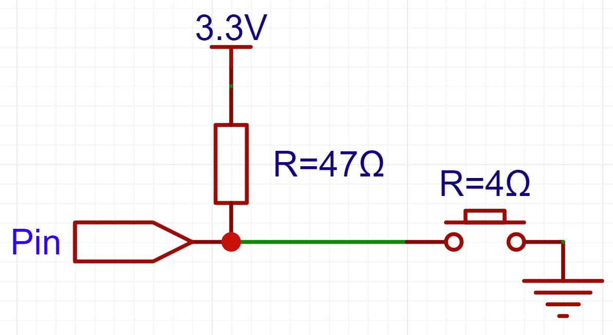 有电阻就有阻值,上拉电阻的阻值一般为 \(1 \sim 100\text{kΩ}\),根据实际情况进行调整。下面对阻值过大和过小的一些可能问题进行说明。(下拉电阻同理)