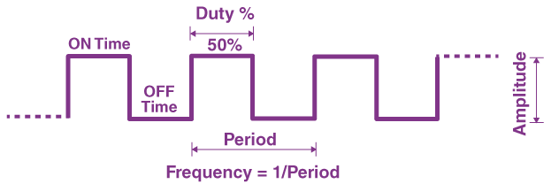 - 脉宽(Pulse Width):高电平的时间长度,等于占空比乘以周期。
